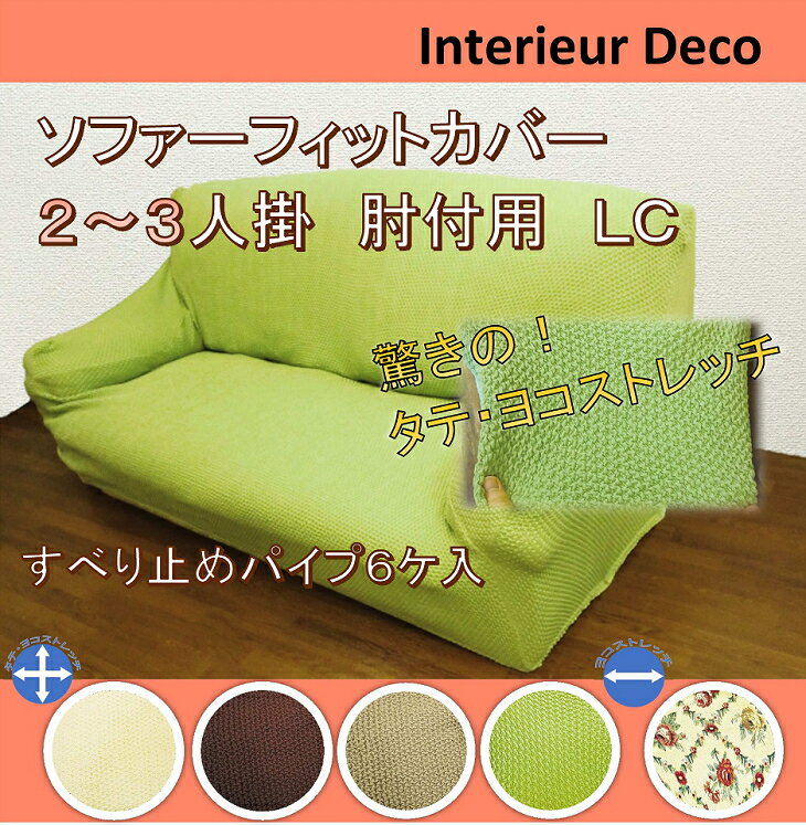 ぐーんと伸びてしっかりフィット! ソファーフィットカバー(2〜3人掛・肘付用)5色セット 【パイプ6ヶ付・豪華ビニールバッグ入】LC【送料無料!】